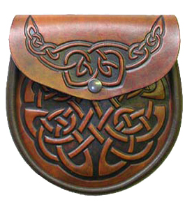 Celtic Knotwork Sporran with Celtic knotwork pattern on flap and front.Sporran closes with a snap button fastener.(Straps and chains are included).